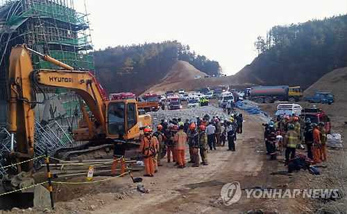 (용인=연합뉴스) 최해민 이영주 류수현 기자 = 경기도 용인의 한 도로공사 현장에서 붕괴사고가 발생, 인부 16명이 한때 매몰됐다가 구조됐다.
