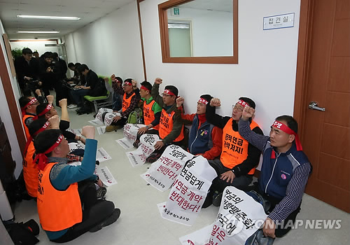 이해준 부위원장을 포함한 조합원 20여명은 이날 오후 5시 10분께 서울 여의도 당사를 방문해 문재인 대표와의 면담을 요청했으나, 당에서 답변을 내놓지 않자 그 자리에서 농성에 들어갔다.