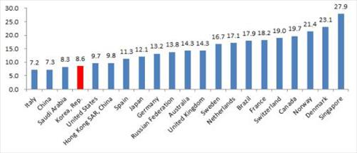2010년부터 2012년까지 3년간 평균 주식보유 기간을 보더라도 한국이 7.2개월로 이탈리아 6.3개월, 중국 7.0개월 다음으로 세 번째로 짧다.