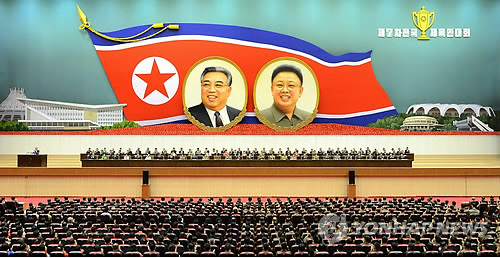 | △ 북한, 전국체육인대회 개최 (서울=연합뉴스) 북한이 25일 평양체육관에서 제7차 전국체육인대회를 개최했다. 김정은 국방위원회 제1위원장은 대회에 서한을 보내 북한 체육을 세계적 수준으로 끌어올릴 것을 독려했다. 노동신문은 26일 전국체육인대회 소식을 전하며 대회장 사진을 게재했다. 2015.3.26 nkphoto@yna.co.kr |