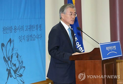 문 대표는 "우리 당은 처음부터 천안함 폭침에 대해 정부의 발표를 존중하고 믿는다고 이야기를 해왔고, 저도 지난 대선 때 이미 '폭침'이라는 표현을 썼다"며 "이제 그런 일로 국민을 분열시키면 안된다"고 지적했다.