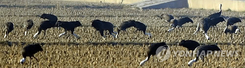 (군산=연합뉴스) 김동철 기자 = 천연기념물 제228호인 흑두루미 500여마리가 최근 전북 새만금지역에 머무르고 있어 새만금이 흑두루미의 중간 기착지로 자리잡을지 관심이 쏠린다.
