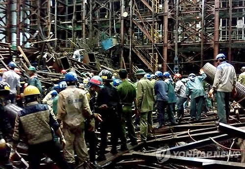 25일 오후 7시50분께 베트남 하띤 성 해안의 붕앙 경제특구에 있는 포모사 하띤 철강회사의 공장에서 항만부두 방파제의 케이슨(기초 철근콘크리트 구조물) 제작을 위한 거푸집이 무너졌다.