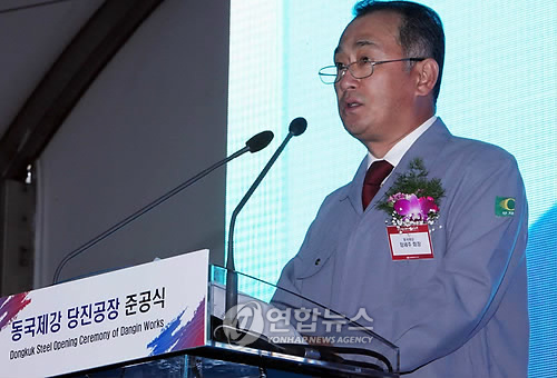 | △ 인사말하는 장세주회장 (당진=연합뉴스) 12일 동국제강 충남 당진공장 준공식에 참석한 장세주 동국제강 회장이 "명품 후판을 만들겠다."고 말하고 있다.2010.5.12<<동국제강>> youngs@yna.co.kr |
