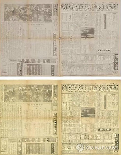 | △ 4·19 당시 현장을 생생하게 담고 있는 '고려대학교 학보(1960년 5월 3일자)'와 '4·18부상자 현황 명부' 기록물을 복원한 사진. 복원 처리 전(위)과 처리 후(아래). (연합뉴스 자료사진) |