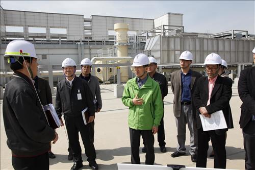 윤 장관 일행은 공장 내 LED(발광다이오드) 조명과 공장옥상에 설치된 태양광 발전시설 등을 점검했다.