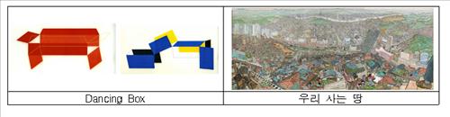 갤러리에선 한국 추상화단의 1세대 김봉태 작가의 '댄싱 박스' 시리즈와 만화적 필치로 세밀함을 살린 최호철 작가의 '우리 사는 땅'을 감상할 수 있다.