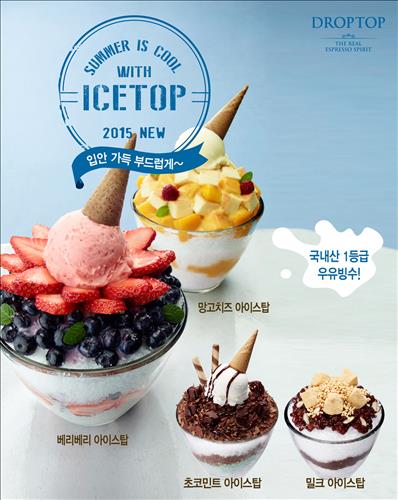 (서울=연합뉴스) 최이락 기자 = 커피전문점 드롭탑은 국내산 1등급 우유로 만든 우유 빙수 '아이스탑'을 다음달 3일 출시한다고 30일 밝혔다.
