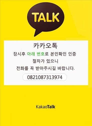 이 팝업창은 '카카오톡 사용을 위해 본인확인 인증 절차가 필요해 표기된 전화번호로부터 인증 확인 전화가 올 것'이라고 안내한다.