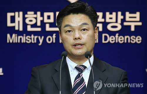 | △ 한국형전투기 개발사업 우선협상대상자로 KAI 선정 (서울=연합뉴스) 김도훈 기자 = 30일 오후 서울 용산구 국방부 브리핑룸에서 방위사업청 김시철 대변인이 이날 오전 열린 방위사업추진위원회 결과를 브리핑하고 있다. |