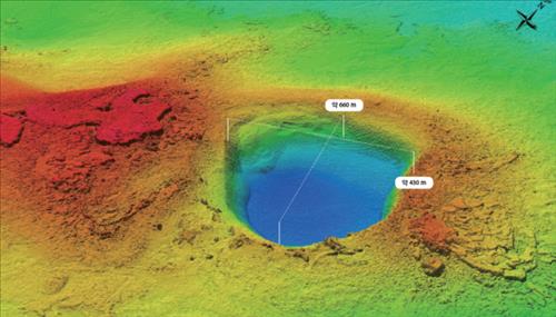 국립해양조사원은 1일 "2007년 조사에서 바다 속 거대한 웅덩이를 발견, 해양물리·지질 등 조사를 실시한 결과, 해저 분화구로 규명됐다"고 말했다.