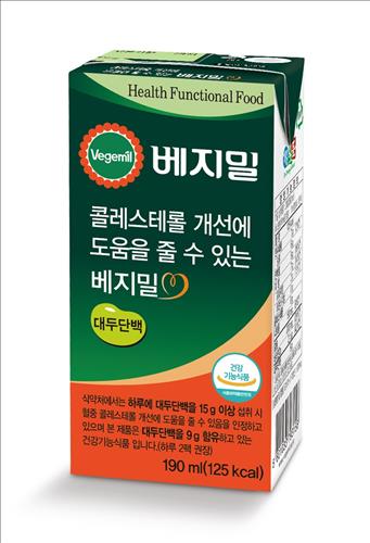 혈중 콜레스테롤 수치 저하에 효능이 있는 대두 단백을 함유해 식품의약품안전처로부터 건강기능식품으로 인정받은 최초의 베지밀 제품이다.