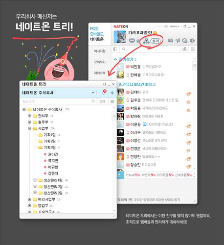 '네이트온 트리'는 회사 조직도를 나무(트리) 형태로 표현한 메시징 서비스다.