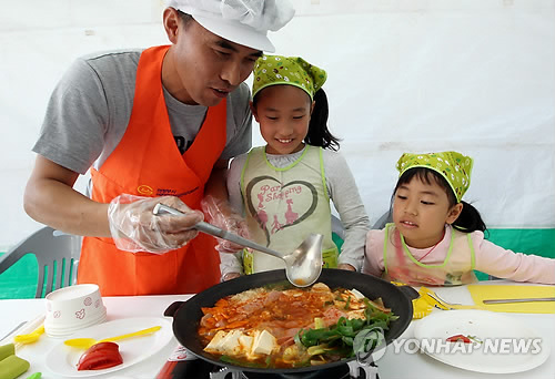 | △ 한국인이 직접 요리를 하는 시간은 일주일에 3.7시간에 불과한 것으로 조사됐다. 사진은 경기도 의정부시 의정부동 음식문화거리 부대찌개 축제에서 경연대회에 참가한 한 가족이 요리를 만들고 있다. (의정부시 제공) |