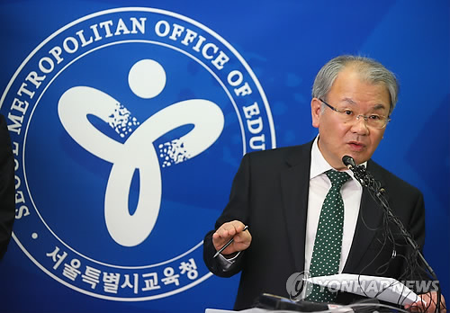 | △ 서울외고·영훈국제중 지정 취소 청문 대상 (서울=연합뉴스) 김도훈 기자 = 2일 오후 서울 종로구 서울시교육청에서 이근표 교육정책국장이 특목고 및 특성화중학교 평가 결과를 발표하고 있다. |
