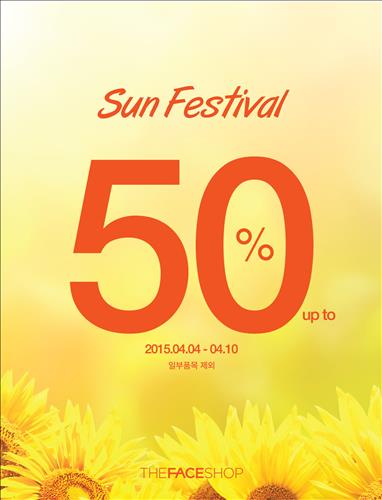 (서울=연합뉴스) 김희선 기자 = 화장품 더페이스샵은 4일부터 7일간 자외선 차단제 전 품목을 50% 할인 판매하는 '선 페스티벌'(Sun Festival)을 진행한다고 3일 밝혔다.,