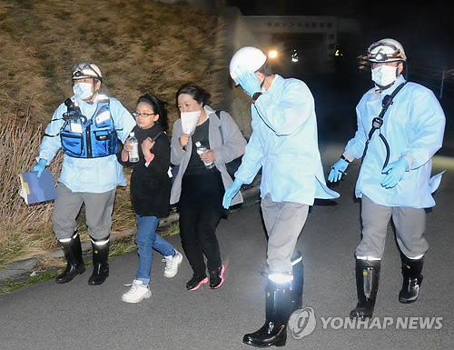 | △ 일본 해저터널 사고후 대피하는 승객들 (홋카이도 교도=연합뉴스) 일본 해저터널을 통과하던 열차에서 차량이상 사고가 발생했으나 승객과 승무원이 침착하게 대응해 전원이 무사히 대피했다. 5일 일본 언론에 따르면 지난 3일 오후 혼슈(本州·본섬) 북단인 아오모리(靑森)와 홋카이도(北海道)의 하코다테(函館)를 바다 밑으로 잇는 세이칸(靑函) 해저터널(길이 54㎞)을 통과하던 열차에서 연기가 나는 등 이상이 발견됐다. 지난 3일 승객들이 소방대원들의 안내에 따라 대피하는 모습. 2015.4.5 jhcho@yna.co.kr |