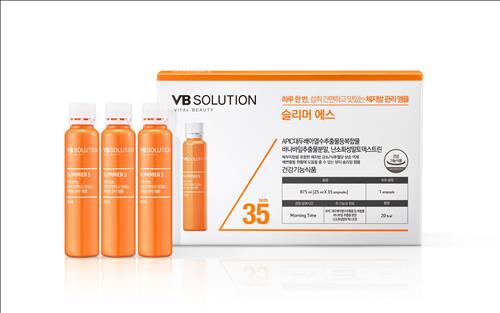 '슬리머 에스'는 APIC 대두배아열수 추출물과 바나나 잎 추출물, 식이섬유가 함유돼 체지방 감소와 식후 혈당 관리에 도움을 줘 탄력 있는 바디라인을 가꿔주는 제품이라고 VB 솔루션은 설명했다.
