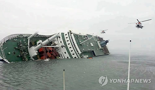 | △ 2014년 4월 16일 전남 진도군 사고해역에서 침몰하는 세월호. (연합뉴스 자료사진) |