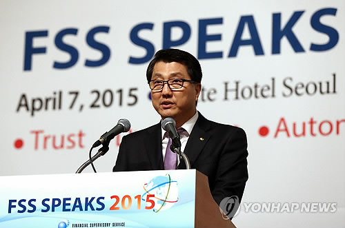 | △ 진웅섭 금감원장 "금융개혁은 외국계에도 성장 기회" (서울=연합뉴스) 이지은 기자 = 진웅섭 금융감독원장이 7일 오전 서울 중구 소공동 롯데호텔에서 열린 외국계 금융사 대상 업무설명회 'FSS SPEAKS 2015'에서 인사말을 하고 있다. |