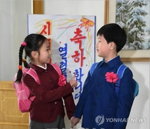 | △ 북한, 소학교 신입생에게 새 교복 지급 (서울=연합뉴스) 재일본조선인총연합회(조선총련) 기관지 조선신보는 7일 "새 학년도 개교식을 맞은 북한의 소학교 신입생들에게 새 교복과 학용품이 공급됐다"며 새 교복을 입은 소학교 남학생과 여학생 사진을 공개했다. 2015.4.7 nkphoto@yna.co.kr |