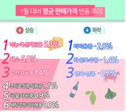 부문별로 살펴보면 낙농·축산가공품 판매가격은 5.3%, 채소 판매가격은 5.0% 올랐다.