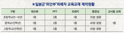 여가부는 2001년 교사용으로 수요집회, 위안부 피해 참상 등의 내용을 담은 CD를 제작 배포한 적은 있으나 이처럼 학생을 대상으로 교재와 교육자료를 제작해 배포하는 것은 처음이라고 설명했다.