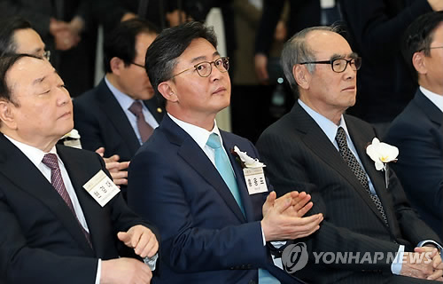 | △ 홍용표 장관, 통일연구원 개원 24주년 기념식 참석 (서울=연합뉴스) 최재구 기자 = 홍용표 통일부 장관이 8일 서울 통일연구원 서초 신청사에서 열린 개원 24주년 기념식에 참석해 최진욱 통일연구원장의 인사말에 박수치고 있다. |