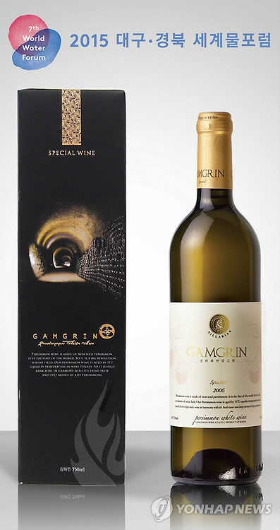 | △ 청도 감와인, 세계물포럼 공식 건배주 (청도=연합뉴스) 오는 12일 개막하는 '대구·경북 세계물포럼' 공식 건배주로 선정된 감와인. 2015.4.8 haru@yna.co.kr |