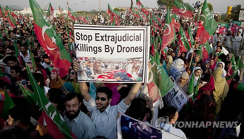 | △ 2011년 10월 파키스탄 이슬라마바드에서 미국의 무인기 공격을 반대하는 시위가 열리고 있다.(AP=연합뉴스DB) |