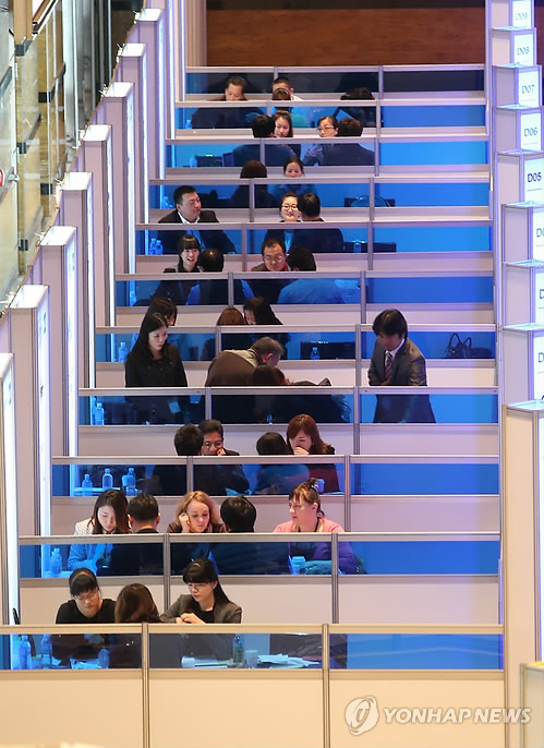 | △ '코리아 그랜드 소싱페어'에서 중국·아세안·중앙아시아 등 신흥시장의 바이어들이 화장품 등 다양한 품목의 수출 상담을 하고 있다.(연합뉴스 자료사진) |