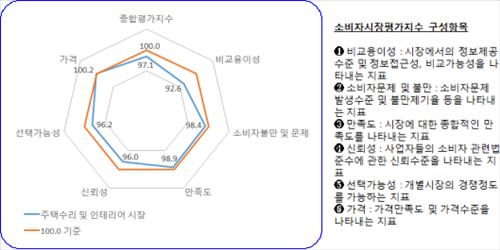 특히 소비자는 주택수리·인테리어 사업자가 관련 법을 준수하는지에 대한 신뢰도가 낮았고(96.0) 현행법이 소비자를 보호하는 수준도 미흡하다고 봤다.