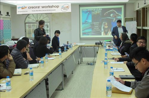 크레오라 워크숍은 효성이 고객 특성에 맞는 트렌드 정보를 제공하고 크레오라를 적용한 신규 원단 개발을 제안하는 맞춤형 상담 활동이다. 2010년부터 6년째 이어지고 있다.
