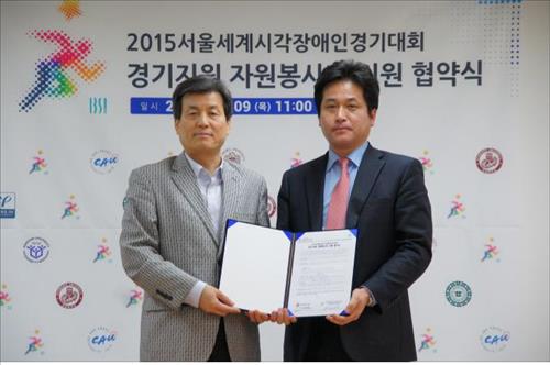 (서울=연합뉴스) 2015 서울 세계시각장애인경기대회 조직위원회(위원장 손병두)는 전국 7개 대학과 자원봉사자 지원 협약을 맺었다고 10일 밝혔다.