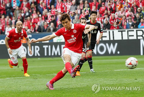 구자철은 11일(현지시간) 독일 마인츠에서 열린 2014-2015 독일 프로축구 분데스리가 28라운드 레버쿠젠과의 경기에서 혼자 두 골을 넣었다.