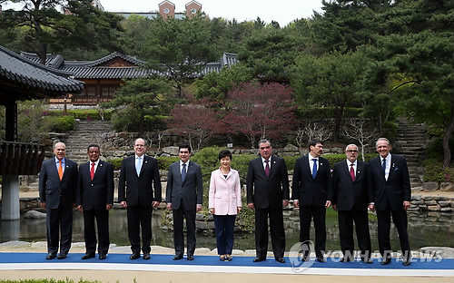(대구=연합뉴스) 한무선 기자 = 12일 제7차 세계물포럼이 개막한 가운데박근혜 대통령이 포럼에 참석한 외국 정상·국제기구 인사들과 오찬을 한 계명한학촌이 눈길을 끌고 있다.