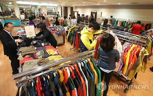| △ /업계, 세일 후반 '초특가 창고개방' 행사에 기대/ (서울=연합뉴스) 유통팀 = 백화점들이 외부 전시장에서 '창고 개방' 행사까지 벌일만큼 대대적 봄 세일에 나섰지만, 기대만큼 소비자의 지갑은 열리지 않고 있다. 사진은 봄 세일 기간 백화점 아웃도어 매장에서 상품을 고르는 소비자. |