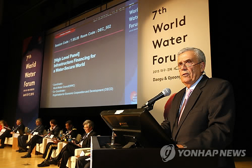 (대구=연합뉴스) 한무선 기자 = 세계물위원회(WWC)와 경제협력개발기구(OECD)는 13일 제7차 세계물포럼에서 정책 입안자와 기업인들에게 물 안보를 위한 재정과 인프라를 확보하라고 촉구했다.