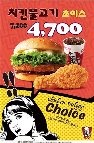 <쇼핑정보> KFC '치킨불고기 초이스'세트 4천700원