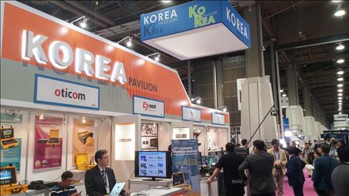 이날 전시장에 마련된 한국관에는 방송통신 중소기업 17개사가 내놓은 방송조명기구, 이동형 중계시스템, 광영상 전송·수신 및 모니터 장비 등이 바이어들의 관심을 끌었다.