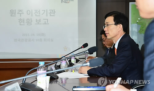 | △ 원주 혁신 도시 이전 공공기관 간담회하는 방문규 차관 (서울=연합뉴스) 방문규 기획재정부 2차관이 14일 원주시 반곡동 한국관광공사 본사를 방문, 원주혁신도시로 이전한 공공기관장들과 간담회를 하고 있다. (기획재정부 제공) |