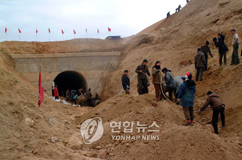 | △ 공사가 한창 벌어지는 <태성굴>공사장 //북한/ 2002.3.26 (조선신보=연합뉴스) <저작권자 ⓒ 2003 연 합 뉴 스. 무단전재-재배포 금지.>(본사자료) |