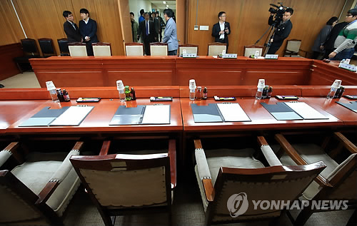| △ 서울외고, 교육청 특목고 평가 청문회 불참 (서울=연합뉴스) 홍해인 기자 = 14일 오후 서울 신문로2가 서울시 학교보건진흥원에서 서울외고를 대상으로 열린 특목고 운영성과 평가 관련 청문회가 궐석상태로 진행됐다. 청문회 시작 전 서울외고 관계자들의 자리가 비어 있다. |