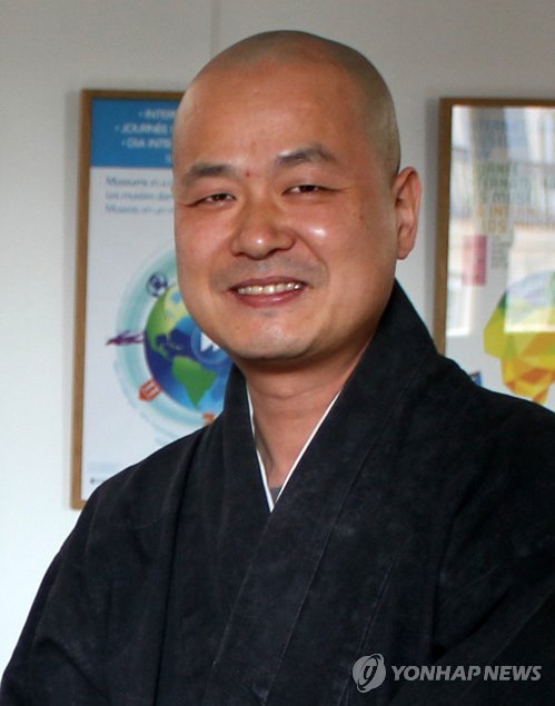 | △ 오구라 컬렉션 반환 운동 벌이는 혜문 스님 (파리=연합뉴스) 박성진 특파원 = 시민단체 '문화재제자리찾기' 대표 혜문 스님이 14일 프랑스 파리에 있는 국제박물관협의회(ICOOM)를 방문해 일본이 임나일본부(任那日本府)설을 주장하는 데 이용하는 창녕 유물 등 한국 문화재를 돌려달라는 국제 청원을 냈다. 사진은 혜문 스님. |