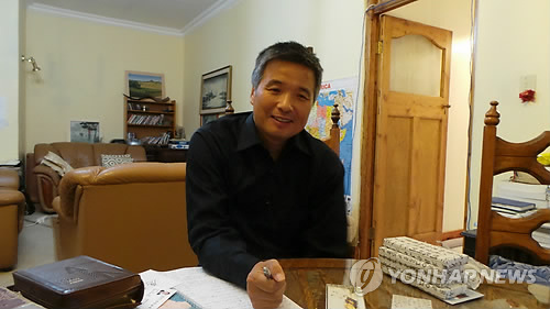 | △ '작은자와의 동침 15년'…노록수 선교사 (요하네스버그=연합뉴스) 류일형 특파원 = 남아프리카공화국 픽스버그에서 15년째 '에이즈 고아'들과 함께 살고 있는 노록수 선교사가 사택 거실에서 연합뉴스와 인터뷰를 하고 있다. 2015.4.14 ryu625@yna.co.kr |
