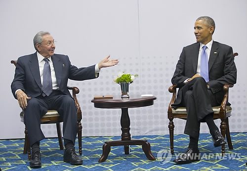 오바마 대통령과 카스트로 의장은 지난 11일 파나마 수도 파나마시티에서 열린 미주기구(OAS) 정상회의에서 만나 상호 협력하겠다는 입장을 확인했다.