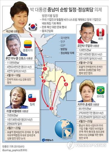 전국경제인연합회는 16일 박근혜 대통령의 남미 4개국(콜롬비아·페루·칠레·브라질) 순방에 맞춰 새로운 '성장엔진'으로 불리는 중남미 시장에 진출하기 위한 전략을 제시했다.