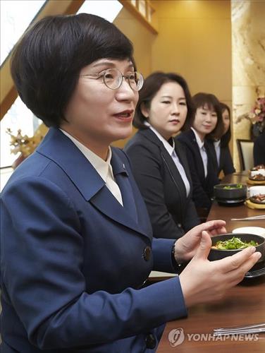 | △ 권선주 기업은행장이 지난해 10월 서울 중구 을지로 본점에서 여성 직원들과 함께 오찬을 하고 있는 모습 |