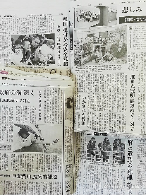 도쿄신문은 진도에서 15일 열린 위령제 소식을 전하고 "유족과 정부·여당은 현재 배의 인양 문제 등을 둘러싸고 강하게 대립하고 있다"며 "정부 측에서 누구도 위령제에 참석하지 않아 쌍방 갈등의 골이 부각됐다"고 적었다.