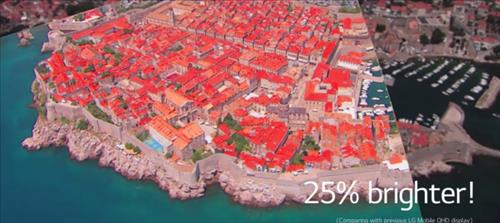 밝기는 25%, 색 재현범위는 20%, 명암비는 50% 각각 향상됐다는 점을 기존 QHD 화면과 교차시켜 보여주는 방식이다. QHD란 쿼드HD의 줄임말로 HD보다 해상도가 4배 높다.